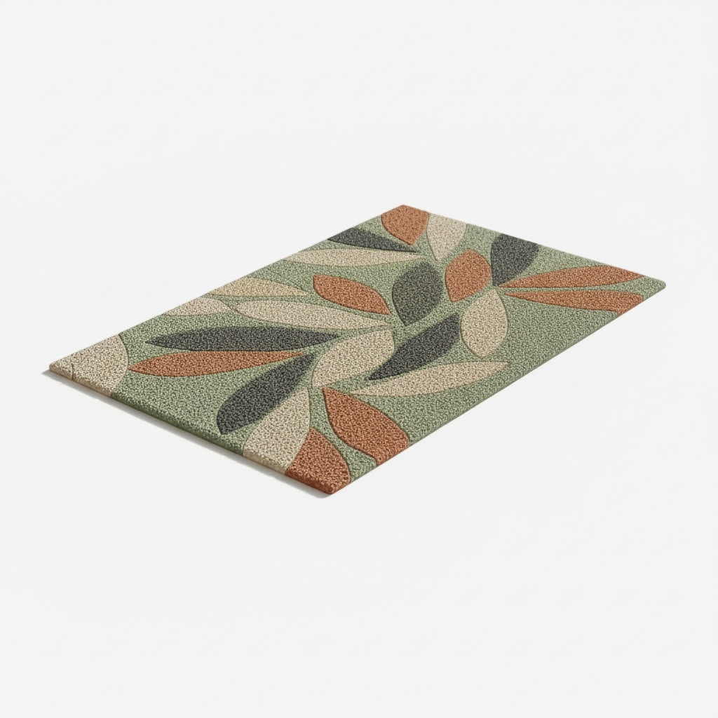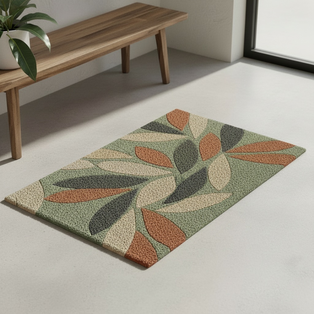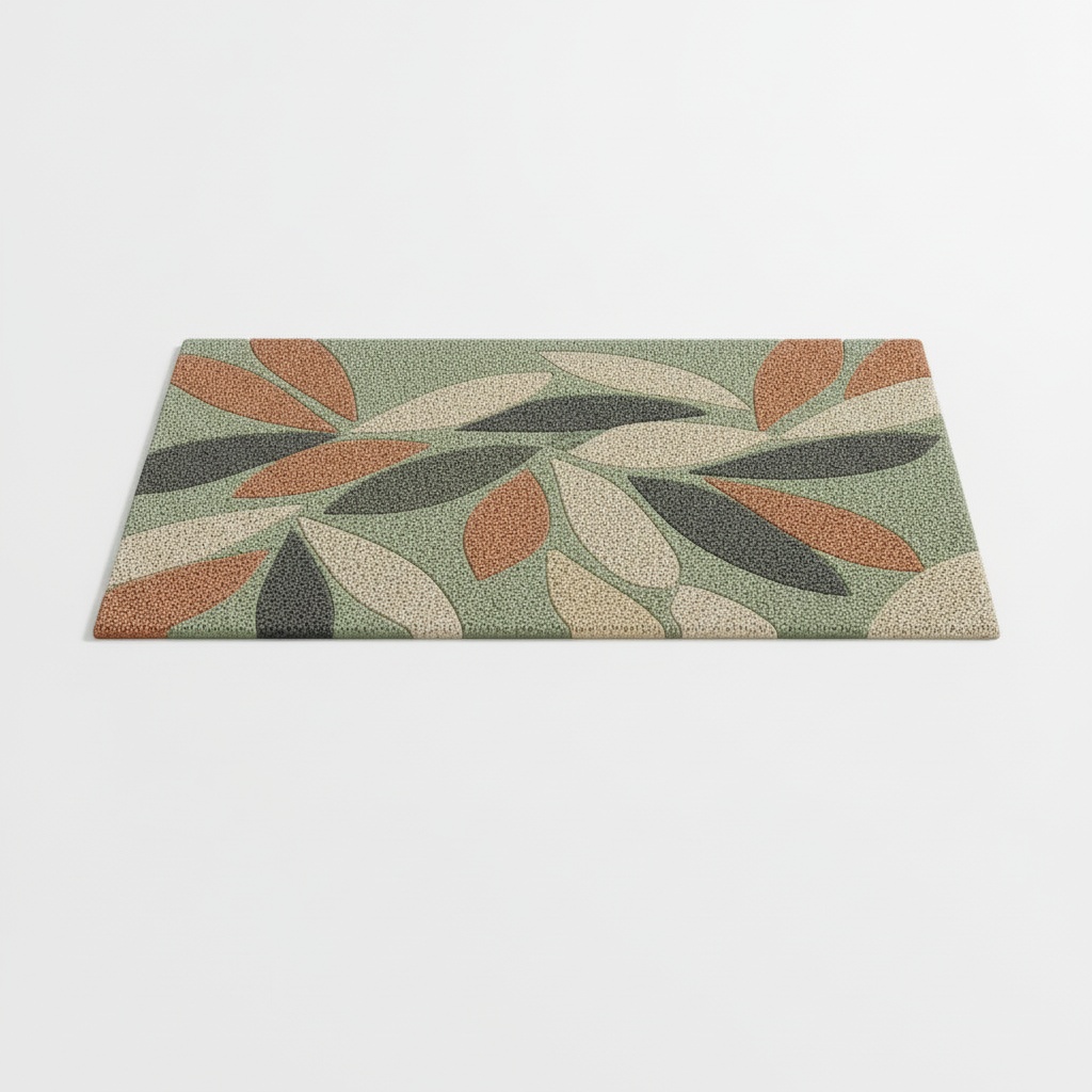 Bring a touch of the outdoors inside with this stylish botanical doormat. It features a modern scattered leaf pattern in warm earth tones of terracotta, sage green, and charcoal. Its durable, textured surface makes it both a decorative and practical addition to any doorway.